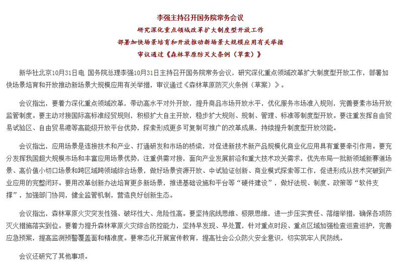 李强主持召开国务院常务会议 研究深化重点领域改革扩大制度型开放工作等